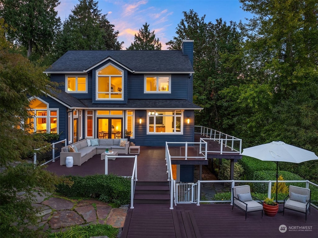 This sophisticated home is tucked away for privacy and all-day sunshine! Mature gardens, large entertaining decks and a hot tub for enjoying island living. Located on the south end of the island which has become the place to be! Restaurants, entertainment, shops, recreation and so much more. Refreshed with newer kitchen, new roof, new wool carpets and new main-floor bath. Sunny, open interiors flow from room to room and French doors lead to decks for seamless indoor/outdoor living. Two primaries: one on the main and another on the upper level with beautiful views. Third bedroom and bath + media room/home office for those working from home. The lower level is ideal for guests or personal gym. All the spaces you need are here!
