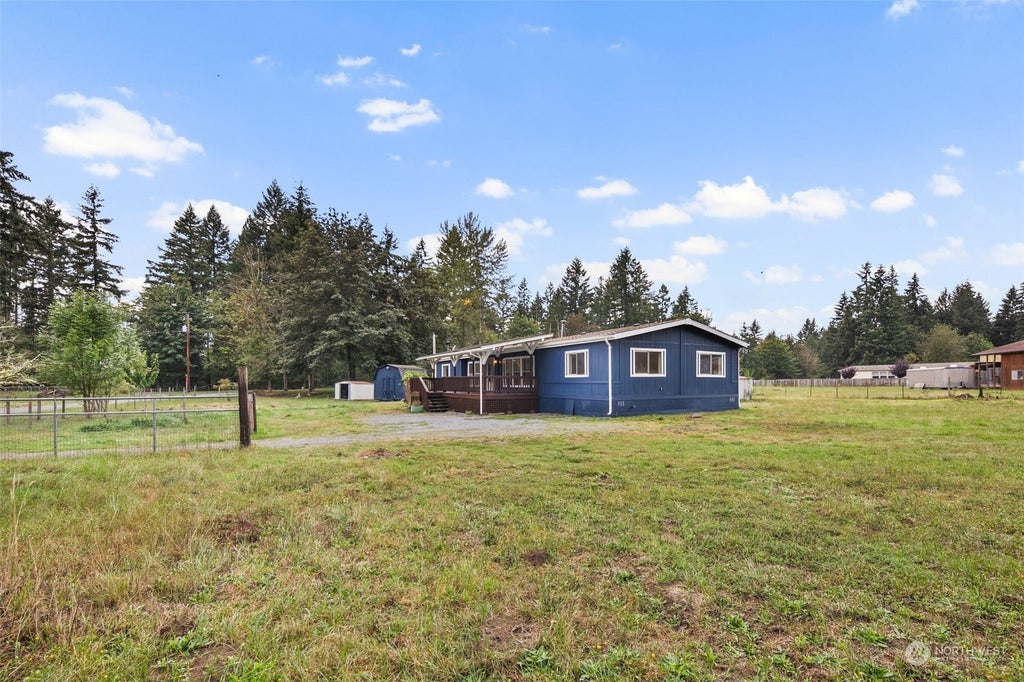 Nestled in quiet Eatonville, this renovated mobile home offers 1,765 sq ft of modern comfort and cozy charm. The living area is bright with large windows. The kitchen features refurbished cabinets, countertops, ample storage, new flooring, fresh paint. The primary bedroom includes an en-suite with a walk-in shower. Two additional bedrooms provide versatility. Central AC and heating ensure year-round comfort. Outside, a covered deck overlooks the front yard. Conveniently located near downtown Eatonville means dining and recreation are right around the corner. Welcome home!