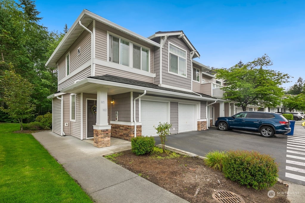 Newly listed and move-in ready, this top-floor townhome boasts bright, open living spaces with vaulted ceilings and oversized windows. Relax on your private patio overlooking a serene greenbelt. Enjoy modern comforts like an electric fireplace, new water heater, and stainless steel kitchen appliances. The oversized 1-car garage with extra storage and driveway parking adds convenience. Just minutes from Willis Tucker Park and close to Mill Creek and Snohomish dining and shopping. Featuring 2 spacious bedrooms, including one with a walk-in closet and attached bath. The community offers parks, trails, sport courts, a splash park, and a dog park. Your perfect home awaits!