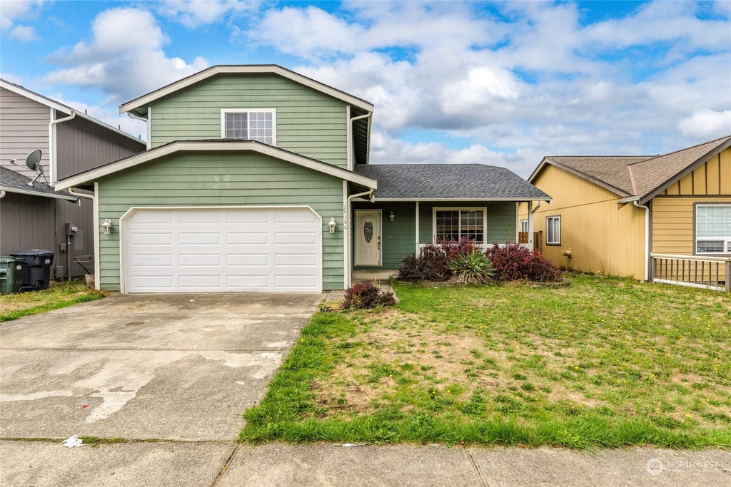 Spacious Spanaway 2-Story Starter Home in Hidden Village! Enjoy an open floor plan, designed to keep you connected with your guests - from the oversized living room w/ vaulted ceilings to the large kitchen w/ oak cabinets for your pantry & a breakfast bar for those quick meals. The primary bedroom offers an ideal escape & a private ensuite bath, while additional bedrooms are ready to adapt to your changing needs! A fully fenced backyard boasts room for your summer BBQs and other celebrations & along with space to garden. Convenient location provides simple access to JBLM, WA-7, shopping, dining & more. Don't miss this great investment!