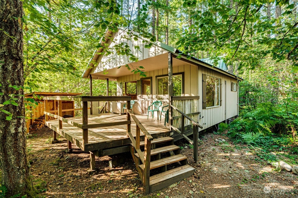 Adorable cabin in the sought-after Swift Creek Estates community where **you own your land**! Enjoy low HOA dues with private boat launch and docks. Just over an hour from Vancouver, and about 18 miles from Cougar, WA. This charming off grid retreat features a one level home and a detached, insulated bunkhouse, newer plumbing, and a newer water heater. Warm up by the cozy wood stove, or relax on the oversized covered front deck. Situated on an oversized lot at the end of a quiet road, with a storage/tool shed, and only a 2-minute walk to the lake. Ideal for full-time living or a vacation getaway! Just minutes to some of the best lakes, hiking, fishing, hunting, or whatever your adventurous heart desires.