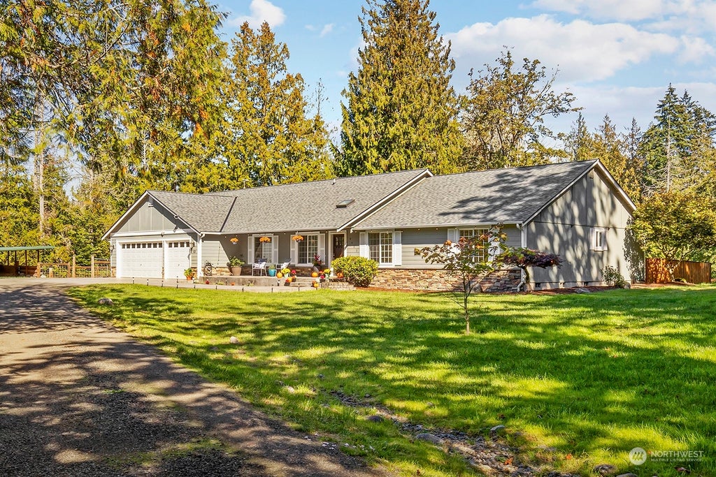 Welcome to elegant country living! This custom-built home, sits on 5 stunning acres of forest and fenced pastures. Soaring vaulted ceilings throughout, skylights, central fireplace, gourmet kitchen, bay window in dining, and expansive living spaces. Two large bedrooms, on opposite ends of the home. Updated luxury en-suite and walk-in closet in larger primary. Amazing outdoor space for entertaining! Double French doors lead out to gorgeous back patio, fenced yard, large stone fire pit, and breathtaking views of the land. Three-car attached garage, with plenty of additional parking. Wonderful neighborhood in the coveted, Eglon area of Kingston. Close to the Edmonds ferry, great restaurants, shopping, and outdoor fun! Come see it today!