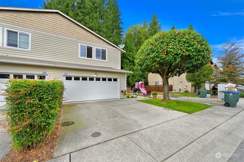 Beautiful Townhouse available! 3 Beds, 2.5 bths and 2 Car Garage. Home features updated Quartz countertops & spacious eating bar. New SS steel Appliances. Updated Luxury Vinyl Plank Flooring. Cozy sunken living room with Gas Fireplace. Dining room space. Large windows in living space shows views of private, newly fenced patio surrounded by trees. Primary Bedroom, with views of trees, vaulted ceilings, a fan as well as an en-suite bathroom including; double Vanity, walk in closet, and updated shower. Two additional bedrooms, large main bathroom with Laundry. Newer Hot water tank and furnace. Close to Highways, schools, shopping center & downtown Sedro Woolley.