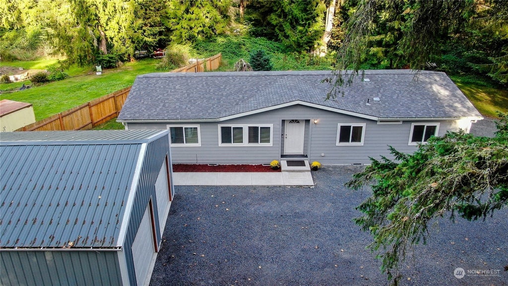 A little country close to town. Like new & move in ready 3 bed/2 bath home on gorgeous & private .43 acre lot adorned with native growth and evergreens. Open kitchen with granite countertops, breakfast bar, & lots of storage & counter space. Dining room w/slider opening to back yard, spacious family room w/space to entertain, & fcozy ormal living room. Large primary suite with walk in closet & five piece bath. Quiet & Serene outdoor space & patio, a perfect spot to enjoy your moring coffee with the local wildlife. 24 x 24 garage includes power & dual door openers. Property is storm ready with propane powered Generac system. Appliances & washer/dryer included. Staged & Virtually Staged.