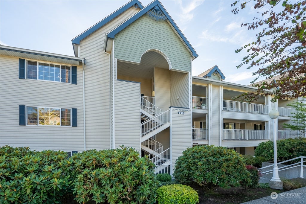 Breathtaking valley & mountain views from this top-floor corner condo in historic downtown Snohomish. The home is bathed in natural light, with large windows that highlight the exquisite woodwork & unique accents. Elegant tiger wood flooring & beautiful ceramic tiles throughout. The gourmet kitchen boasts ss appliances & generous storage. Murphy bed and fold out desks in both rooms; special touches throughout. Heated tile floors in primary bath. Spacious corner balcony. Abundant storage throughout. Conveniently located near the elevator, it includes 2 large secure indoor parking spaces. The HOA covers w/s/g. Stroll down 1st Street to shops & the seasonal farmers market. Minutes to centennial trail, aquatic center, & HWY 9 & 2.