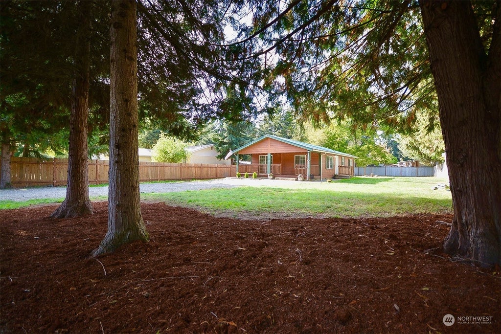 Welcome home to this fully fenced, very well-maintained home. New LVP flooring throughout. Home has a large covered front porch w/solar lights. Side entry into the spacious living rm w/vaulted ceilings & ceiling fan. Beautiful open kitchen, w/lots of counter space & plenty of storage, new appliances.French slider off kitchen to covered deck. Nice size primary bedrm w/its own bathrm. Home has 2 other bedrms, a full bath & utility rm.The property is fully fenced & has a large yard w/a fire pit in the backyd. Also has an outbuilding for storage. Property is a short drive to downtown Yelm close to JBLM, & Olympia. HOA covers common area maintenance,water, community pool, park,private beach access to float or fish the pristine Nisqually River.