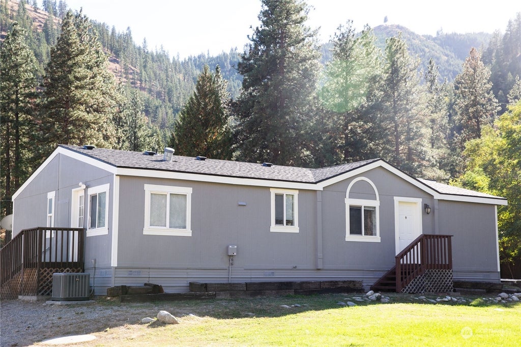Enjoy the sereneness of living upriver! Surrounded by mountains and forest, just steps away from this comfortable 3-bedroom, 2-bathroom Fleetwood manufactured home. Fresh paint, newer flooring and a new HVAC system in the last few years makes this a turn-key move-in ready home. With almost a half-acre lot, there is plenty of room to build a garage or shop, with plenty of elbow room left over for everything else you might desire on your new country property. The outdoor shed has power and A/C, ready to be your new hobby room.