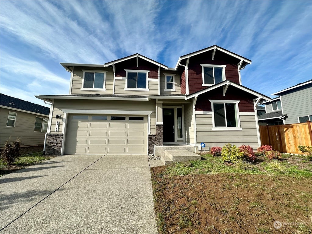 Welcome to the Pines at Sunrise Community! The main floor has a den/office space as you walk in, 1/2 bath, open-concept kitchen includes stainless steel appliances, Quartz counter tops, tile backsplash and a convenient corner pantry. Spacious living room with gas fireplace leads to a covered patio and fully fenced back yard. A versatile bonus room can be found at the top of the stairs to the left. Primary suite to the right of the stairs includes a walk-in closet, dual vanities and a separate tub and shower. There are 3 additional bedrooms upstairs and a full bath. Mountain views from the bedrooms on the left. This home is close to all of the amenities of Puyallup. Come see this home today!