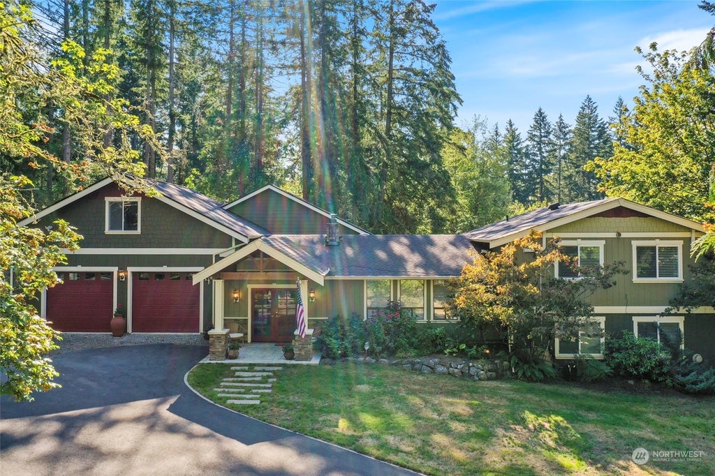Dreamy Sanctuary! Lovely multi-gen remodeled home on 9 acres. Functional as 3 suites radiating from warm/inviting Great Room. Pecan custom cabinets, granite counters, SS appliances, propane cook top, large island, ample built-in shelving. Custom addition (2022) features accessible no-step primary ensuite w/full access to outdoor beauty on large covered back porch; new heat pump. Upstairs-Second primary ensuite, huge walk-in custom closet, built-in shelving; full bath off hallway. Downstairs--half bath with 2nd w/d hookup, large bedroom & its own living space w/outdoor courtyard. Mini Splits in each living space/bdrm. Bonus room above garage; detached shop w/office. New well, filter, treatment system; full house generator.