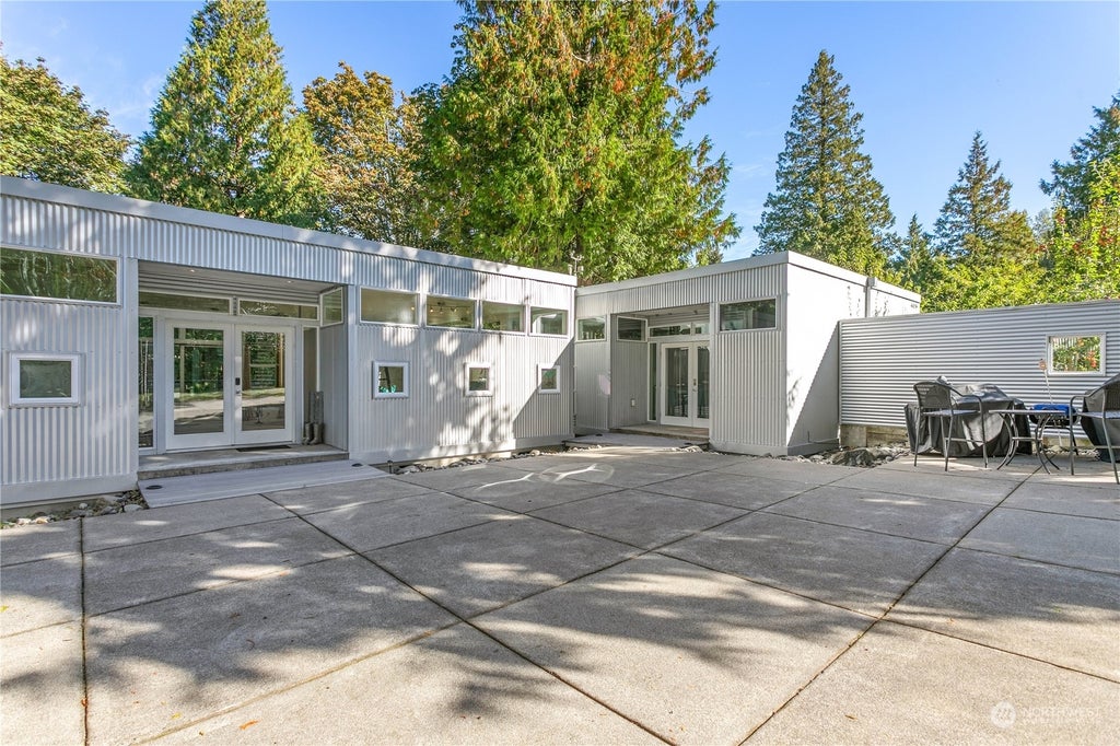 Rare find-One of a kind Contemporary stick build (container style home) on wooded rare 2+ acres inside the city limits. Everything on one level - 3 bedrooms, 3 baths, lots of upgrades throughout, to many to list. Modular design with abundance of windows overlooking park like setting. Large gourmet kitchen with Bosh and GE Monogram appliances, laminated floors, LED lighting throughout make it easy to maintain. Just a hop skip and a jump to Canadian border, shopping, parks, and schools. Large two car garage, gated courtyard, fenced in garden space with fruit trees. Stop by and see!