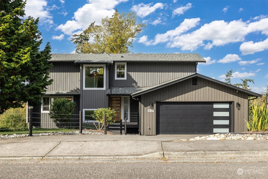 This fully renovated 4 bedroom 2.5 bath home has Bay, Mountain and City views from every window. New wood floors, kitchen appliances, roof, siding, central A/C, earthquake reinforcement & many more updates, too many to list! The primary features vaulted ceilings, Elfa closet system, an ensuite bath, & a private deck with the best views Bellingham has to offer. The 2nd & 3rd bedrooms located on the second level with a full bathroom. Lower level includes amazing views, 4th bedroom, 3/4 bath and utility rm w/ample storage, great room with a wet bar & accesses to the backyard. The front & back yard has mature landscaping that offers beauty & privacy. 2-car garage. Tucked back into a cul-des-ac with easy access to trails.No detail was spared!