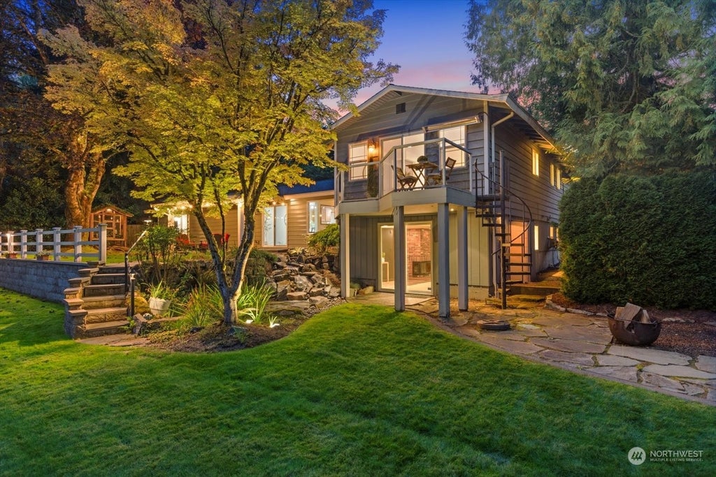 Welcome to your own private paradise! Tucked away at the end of a scenic drive, this 1.47-acre property is a rare find. The beautiful grounds feature mature landscaping, spacious sunny lawns, covered stamped concrete patio, serene water feature, and elegant outdoor lighting. Inside you'll find an updated kitchen, bonus room, spacious primary bed with expansive dressing room and private heated balcony overlooking your stunning estate. There's also a bonus room off the garage for a home office, gym, or creative space. The fantastic outbuildings include a finished 1,500 sq ft shop that’s been transformed into an amazing heated clubhouse, plus a second detached 900+ sq ft garage/shop with power. Don't miss the 2 covered RV bays! Welcome Home!