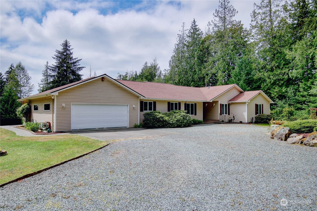 Discover the beauty of this custom one-owner home boasting nearly 3,000 sq ft of living space on 1 level. Serene 4.75-acre lot. Meticulously designed sanctuary offers 3 spacious bedrooms, an office, a double sided gas fireplace and radiant in-floor heating. The massive kitchen has quartz countertops, ample cabinetry, and two lit display cabinets. Enjoy the tranquility of the fully screened back patio, perfect for wildlife watching. Over 900 sq.ft garage with shop area. If the lights go out, you'll only be waiting 45 seconds before the generator kicks in. Thoughtfully built with amazing storage throughout. Sunny clearing around the home and a wooded perimeter for privacy, this quiet retreat is a haven for deer and other wildlife.