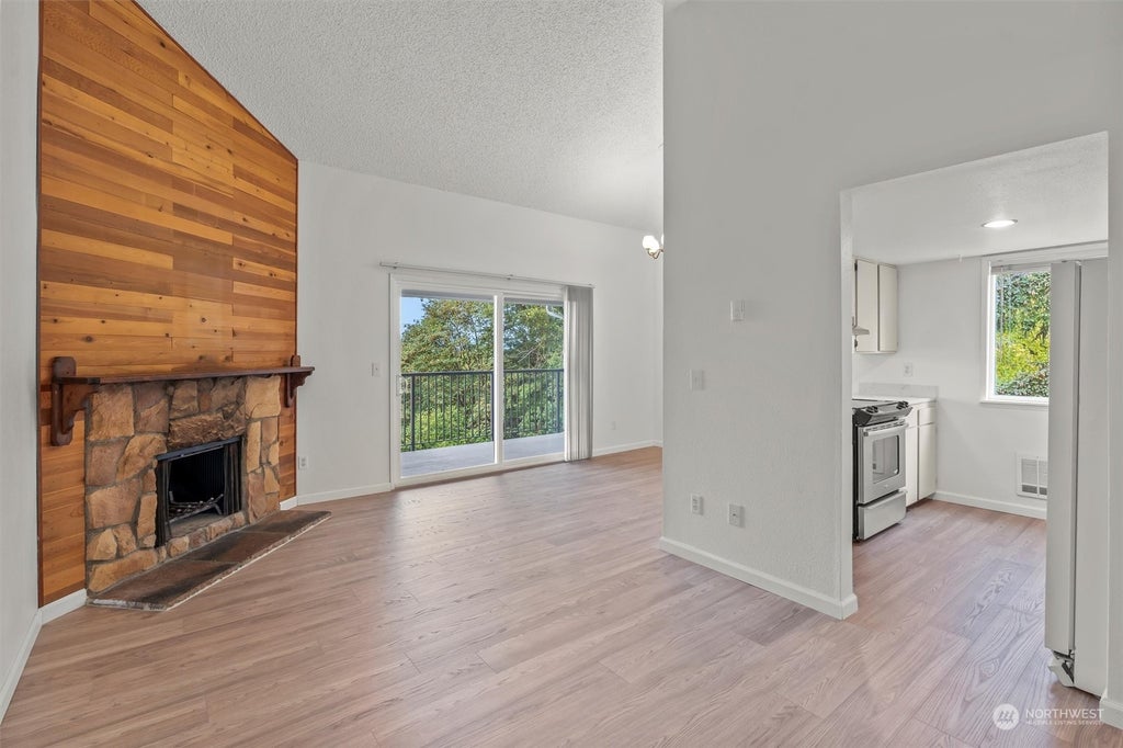 Welcome to Sunset Vista Condos - Unit B37 just received a fresh update and is ready for new owners. Vaulted ceilings in the living room give this space a very open and airy feeling. The community features reserved parking, a cabana, outdoor pool, and professional property management. The unit is located on the end of the building on the top floor! Tons of natural light fill this unit. Luxury Vinyl Plank flooring flows throughout the condo for a seamless and inviting feel - cozy up next to the wood burning fireplace or enjoy some quiet time out on the balcony overlooking Salt Air park. For those looking for a budget friendly condo that is easy for commuters or others desiring quick access to Seattle or Tacoma, look no further. Welcome Home!