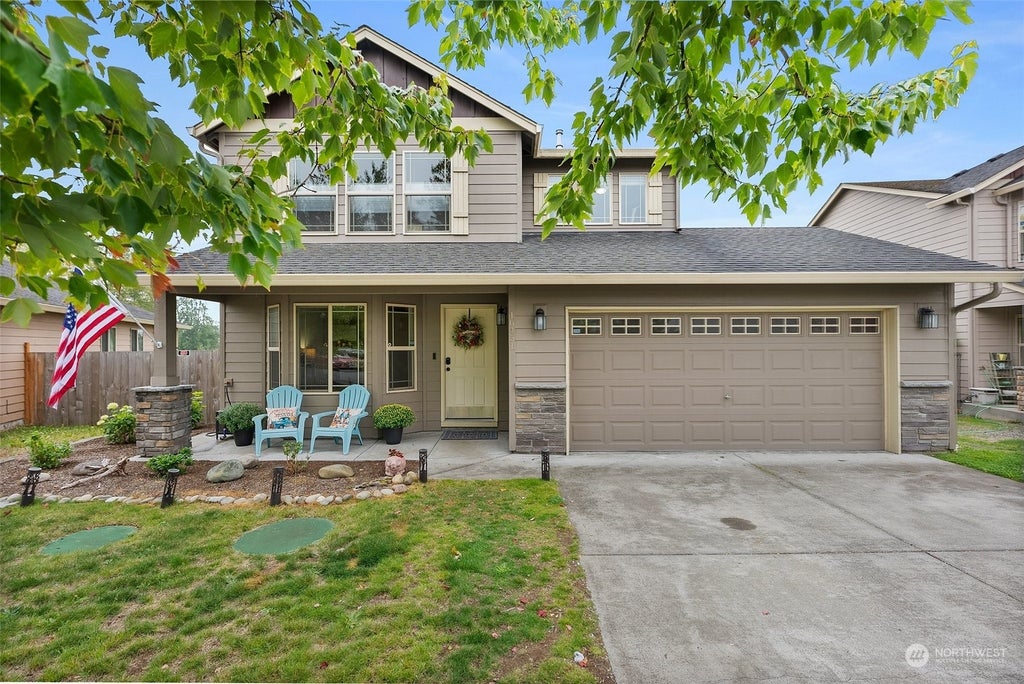 Meticulously maintained 3-bedroom, 2.5-bath, 2,100 sq. ft. home in Yelm w/AC! Step into the cozy living room with a gas log fireplace, leading to a spacious open-concept family room & kitchen featuring maple cabinets, SS appliances, lg center island, and additional eating space. New carpet, fresh interior paint, water heater 2 yrs old, and HVAC & AC recently serviced. Seller completed a pre-inspection for peace of mind. Primary suite has a HUGE walk-in closet & 5pc en-suite bath. Enjoy the deck overlooking a beautiful greenbelt. Sprinkler system in front & rear, short walk to the elementary school, close to JBLM for easy commuting!
