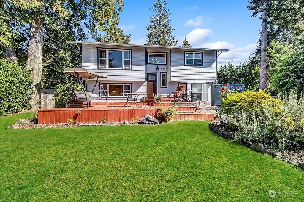 *PENDING AT OVER ASKING* Beautifully Updated Lake Tapps 3bd, 2bath, 2200 sqft home on 1/4 acre+corner lot. Sprinklers water large & level yard surrounded w/mature & well manicured foliage primed for relaxation and entertainment in your own private oasis. Grounds present Detached Garage, RV & Boat Parking, & fully paved driveway w/two points of access for easy vehicle maneuverability. Lots of natural light fill the spacious open concept. Hardwood floors & ceramic tile, solid wood doors & trim, & all the modern features throughout. Breathtaking kitchen w/ custom soft-close cabinets, high-end stainless steel appliances, quartz & sequoia counter tops. Primary bed/bathroom is absolutely stunning. Private access to boat launch, clubhouse, & park.