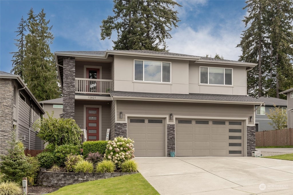 This stunning property features a spacious 3-car garage and a gourmet kitchen complete with a generous island perfect for entertaining. A 12' French slider patio door connects indoor and outdoor living-leading to a cozy outside fireplace. Upstairs, you'll find a large loft and deck with 4 beautifully appointed bedrooms, including a luxurious primary featuring floating cabinets, designer sinks and a spa-like tile shower-comfort and style are at your fingertips. The fenced backyard boasts an artificial turf lawn, providing low-maintenance for play and relaxation. This home also showcases new exterior trim lights that add a touch of charm. Don't miss out on a perfect blend of luxury and practicality. Close to schools, shopping and commute.