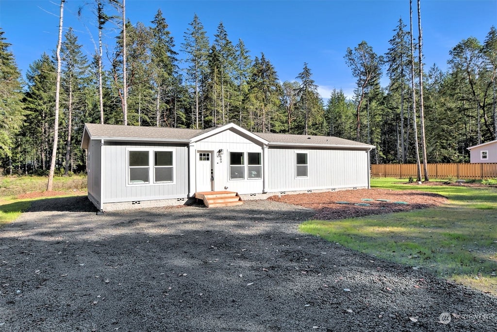 Discover contemporary living in this 1,344 sq ft home featuring 3 bedrooms and 2 bathrooms, complete with stainless steel appliances and a generous open kitchen island—perfect for cooking enthusiasts. Nestled on 1.25 private acres within a gated community, you'll have direct access to a scenic beach trail leading to one of the finest beaches in Southern Puget Sound. Plus, enjoy the benefits of eco-friendly living with NEEM energy certification. Plenty of room to build a garage.