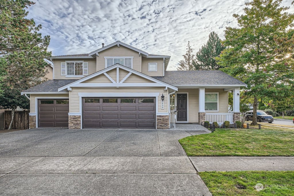 Impressive NW contemporary home in Lakeland Hills featuring 5 bedrooms, 2.75 baths, and 2,711SF of well-designed space. Light & bright w/ an abundance of windows. Enjoy vaulted ceilings in the formal living room, seamlessly flowing into the dining area, a spacious kitchen w/ stainless steel appliances, island w/sink, & pantry, plus an inviting family room w/ a cozy gas fireplace. Main floor home theatre w/projector! The primary suite offers large windows & a spa-like bath w/dual vanities, soaking tub, and separate shower. Additional perks include a laundry room with built-in cabinetry and a deep sink, new carpet & interior paint, 50 year roof, 2-car garage, & fully fenced backyard w/covered porch, perfect for year-round outdoor enjoyment.