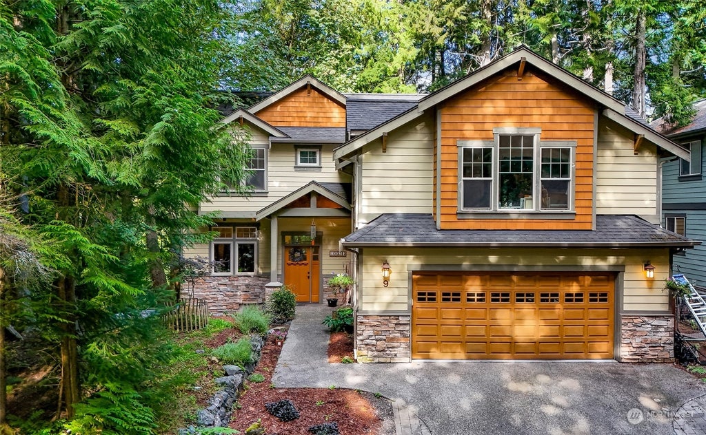 Gorgeous Craftsman style home! This peaceful sanctuary features over 3,100 feet of living space with 3 spacious bedrooms, 3.5 bathrooms, office, versatile loft, and a large bonus room. The grand entryway with high ceilings sets an elegant tone, complemented by fine finishes, detailed trim work, and hardwood floors. The chef's kitchen includes stainless steel appliances, granite countertops, and an oversized island, adjacent to a formal dining area. The great room, centered around a cozy gas fireplace, opens to a back deck through oversized French doors, blending indoor and outdoor living.The primary bedroom suite is a true retreat with a gas fireplace, large windows, walk-in closet, and a 5-piece ensuite bathroom.