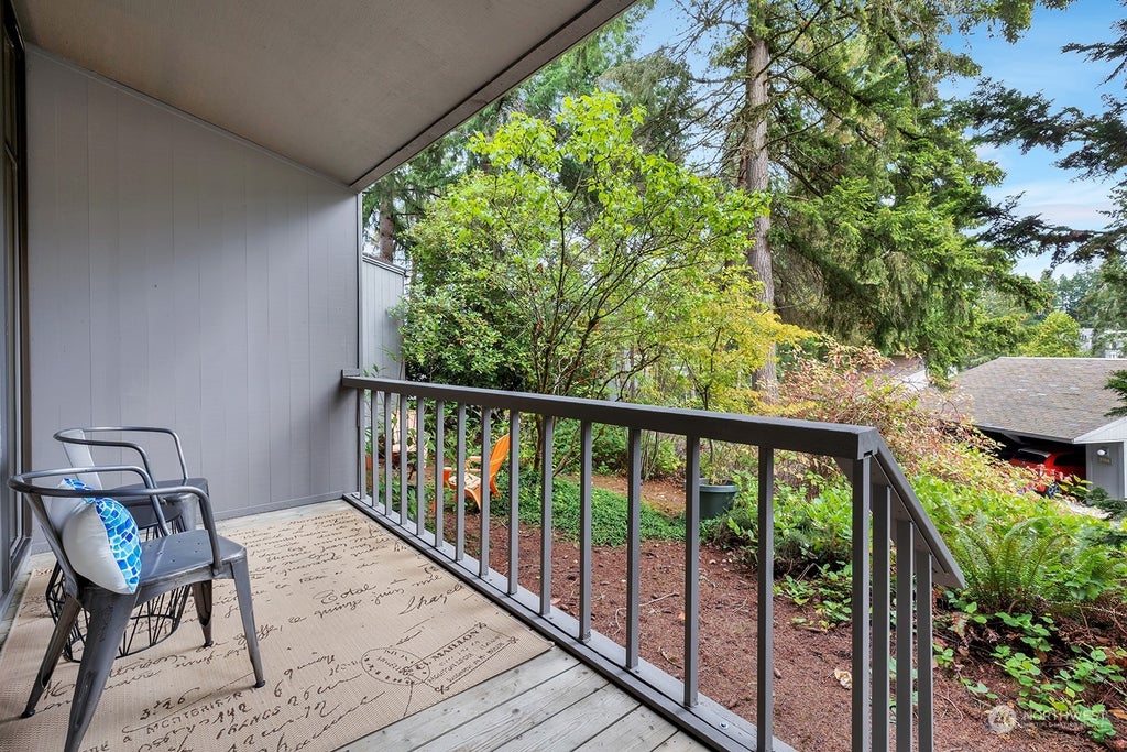 Gem in the heart of 60-01 Village! Townhome is beautifully presented with fresh paint, new plank floors/carpeting. Living room boasts dramatic wall to ceiling windows. Enjoy the Chef's kitchen with new stainless appliances, quartz counters, vinyl plank flooring. Deck with steps going down to the yard invites you to relax, surrounded by trees & nature. Primary bedroom boasts new carpeting, fresh paint, good closet storage, plus windows overlooking the yard and nearby trails. Full bath has new quartz counters and new flooring. Washer/dryer in handy closet near kitchen. Carport parking + lockable storage. 60-01 has gated entry, 4 pools, 3 lakes, 83 acres of trails/parks, clubhouse, gym, pea patch, more! Near Google, Microsoft, Hwys 405 and 520
