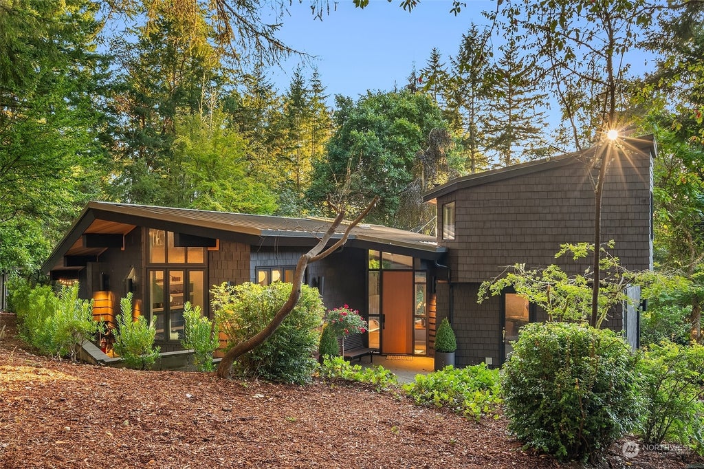 Private island getaway nestled in the Westside woods of Vashon Island. An architectural work of art that melds cedar, steel and concrete into sophisticated yet comfortable intimate spaces. Stunning Chef's kitchen with adjustable center island, white oak built-ins, Wolf Range, Subzero refrigerator and marble countertops. Living room features soaring cedar ceilings, polished concrete floors and a rotating Rais fireplace. West facing park-like shy five acres with sweeping lawns, extensive gardens and outdoor entertaining. Close to a beautiful neighborhood beach - this is your island retreat!