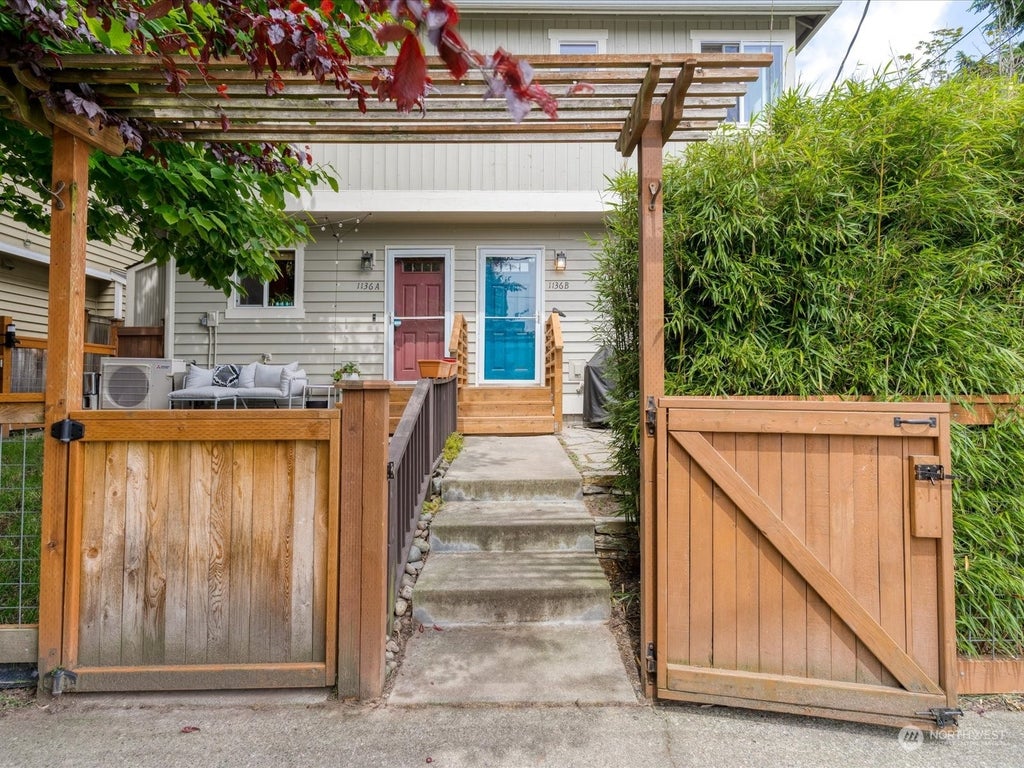 This charming townhome, located near North Seattle College and Greenlake, is a perfect option for both owner-occupants and investors. With no HOA dues, it provides fantastic value! The main level boasts an open floor plan with beautiful Bamboo flooring, a convenient half bath, and a modern kitchen equipped with stainless steel appliances and sleek granite countertops. Upstairs, you'll find two bedrooms, a full bath, and a stackable washer/dryer for added convenience. Outside, enjoy a fully fenced, low-maintenance yard with a flagstone patio and garden area, plus a designated off-street parking spot. Easy bus access to UW. Close to shopping, dining, parks, and schools, with easy access to I-5, Hwy 99, RapidRide, and the Northgate Light Rail.