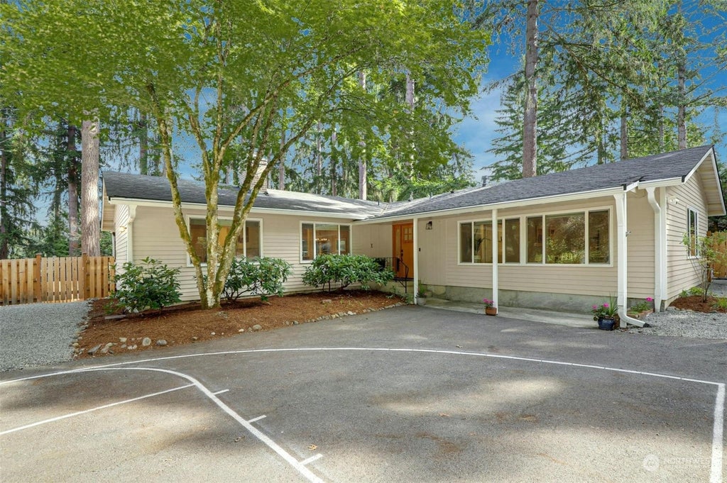 Beautifully remodeled, Move-in ready Rambler on a quiet cul de sac. Bellevue SD & Newport HS boundaries! Incredible upgrades include:Open concept kitchen, updated bathrooms, craftsman front door, recessed lighting, central A/C, new gas fireplace, garage converted into bonus/theater room w/built-in surround sound speakers up/down blackout shades & dedicated laundry room w/ brand NEW furnace, a tankless water heater and a ton of storage. Backyard is an entertainers dream: Expansive patio w/ built-in gas fire pit, wired for a hot tub (this one negotiable),Fully lit Multi-use activity area, new fence, paved circular drive+RV Parking. Primary ensuite offers walk-in closet w/ barn door. Great location close to I-90 and I-405.