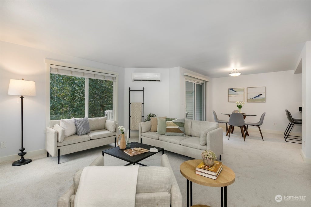 This prime location condo in Factoria offers serene living with stunning views of Coal Creek and greenery. Filled with natural light, the inviting unit features spacious bedrooms, a kitchen with slab counters, pantry space, cooling and heat pump, and a lovely balcony with expansive views. Freshly painted and with new carpets throughout, the home includes a primary en-suite with ¾ bath and walk-in closet, plus a full-size washer and dryer. Enjoy beautiful views from windows throughout, ample storage, and reserved covered parking. The HOA is well-managed, and the pet-friendly Woodsong condo offers plenty of guest parking. Conveniently located near Factoria Mall, parks, schools, and easy access to I-90/I-405. Move-in ready and pre-inspected!