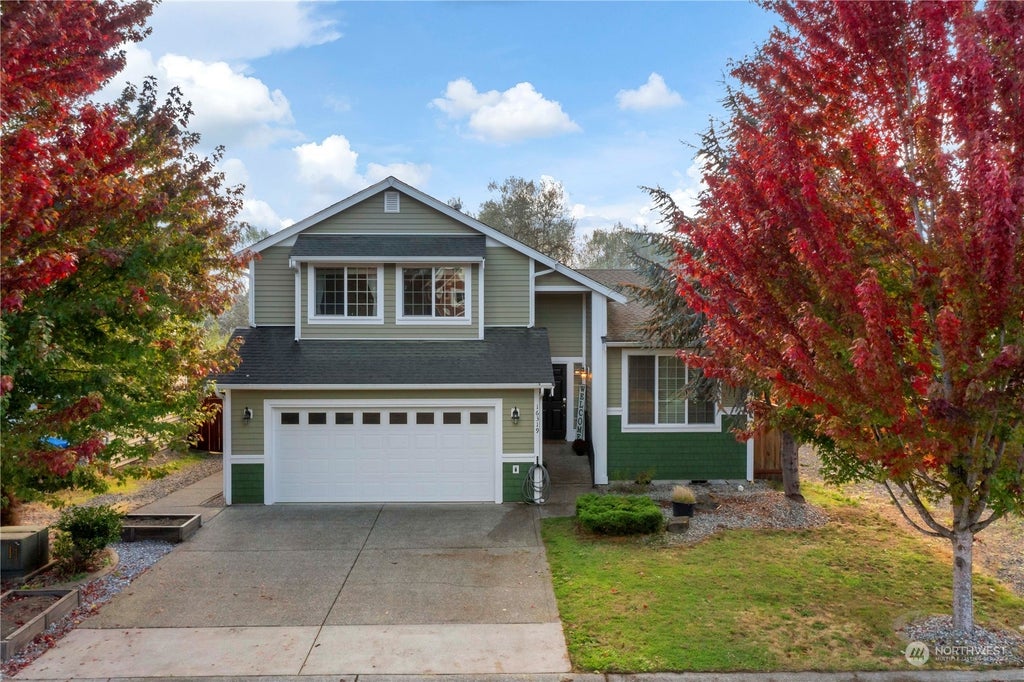 Move-in ready 3 bed 2.5 bath home with an office (optional 4th bedroom) offers a spacious layout perfect for comfortable living! The main floor boasts vaulted ceilings, creating an open, airy feel throughout the formal dining/living room that flows into a large kitchen with island, quartz counters, bar seating, tile backsplash, seamless flush mount sink & loads of storage. LVP flooring throughout main floor. Enjoy the cozy gas fireplace in the family room and retreat upstairs to the primary bedroom, complete w/ a large walk-in closet & 5-piece bath. Two additional bedrooms & a full bathroom upstairs. Private backyard is fully fenced w/ patio & fire pit. Newer heat pump, furnace & landscaping. Close to amenities & schools. Pre-Inspected.