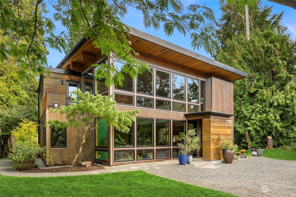 Breathtaking in its design, renowned architect Matthew Coates sited this home to ensure the extraordinary sunshine & serene beauty of the outside penetrates all inside spaces. Surrounded by 2.5 acres of pasture on a quiet no-through street, floor to ceiling windows and spanning beams composed openness and warm acoustics for a baby grand piano to resonate in the special space. Inside a glassy membrane that wraps the container-inspired structural elements is a custom stair/railing, high end appliances, radiant concrete floors: unadorned yet elegant. Close to miles of trails w/ proximity to both the ferry and greater Kitsap, this unique property offers the island’s finest attributes — seclusion, artistry and a majestic natural setting.