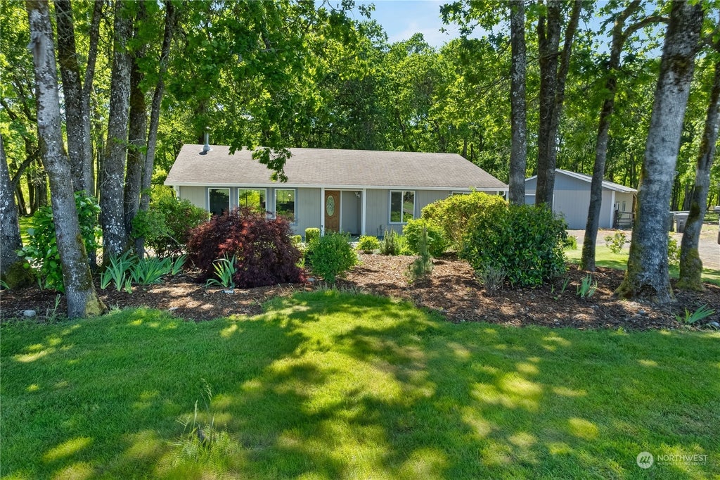 Charming gated 4.7-acre farm, fully fenced & ideal for rural living with urban access! This one-story home features an open concept design, wood-burning fireplace, & is wired for a generator. Enjoy new interior doors, laminate flooring, & fresh paint inside & out. The spacious kitchen boasts a large island & pantry. The primary bedroom includes a walk-in closet & full-size bath. Outside, find a large deck, beautifully landscaped grounds, a creek, RV parking, & space for farm animals. Two RV spots with water & 220 power hook-ups. A large detached garage provides ample storage. Bring your cows, horses, & farm animals, this property offers modern comforts in a serene setting. Close to I-5, near restaurants, shopping, & one hour from the beach.