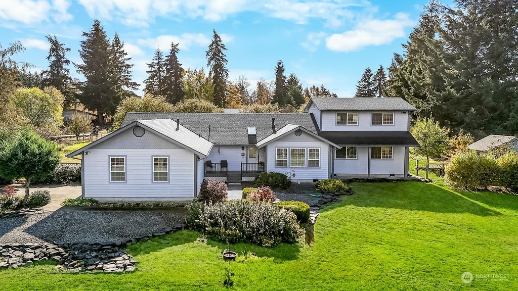 Welcome to your Forever Home! Ownership pride is evident throughout this fabulous three bedroom rambler with upstairs bonus rm. Flowing floor plan offers Living, Family, Kitchen and Dining, plus home office and additional den. Heat pump with AC keeps you perfect temp all year around, with propane fireplace bringing ambiance. Granite counters, six panel doors, skylights, 2inch mini blinds, mostly hard surface flooring. Sitting on an acre parcel, the fully fenced back yard offers lush mature landscaping & fruit trees, enjoyed from the covered deck or around the fire pit. Multiple outbuildings. It really has everything! Country setting, just minutes from town with easy commute to JBLM, gated entry, and no HOA.