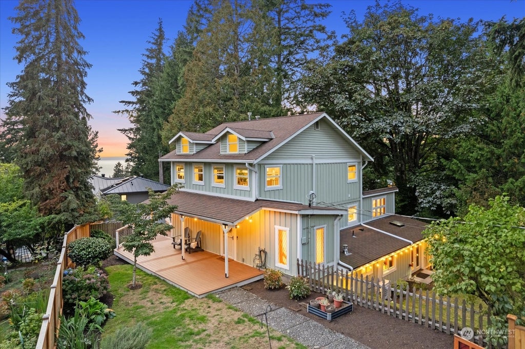 Tucked away at the end of a private drive, this enchanting French country style home will capture your heart. A rare combination of 40's charm & workmanship blended with mindful, modern updates + tremendous income producing opportunities. Total bonus: Partial views of the mountains and Sound from the completely renovated upper level with vaulted ceilings, chef's dream kitchen, dining & living rooms and a powder bath. The main level includes 2 bedrooms, luxe full bath & laundry. Lower level features a family room, bedroom, full bath & can be its own mini suite. DO NOT MISS the stunning apartment with separate entry, attached laundry, complete kitchen & full bath, loft sleeping & private deck. Detached 16/ x 20' detached shed=DADU potential.