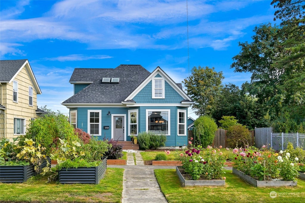 Located in the sought after SUNNYLAND neighborhood, this beautifully updated 2,114 square foot, 4 bedroom, 2.5 bath home connects historic charm with modern comfort. Built in 1900, this residence features open living and dining spaces, tall ceilings, and a cozy gas fireplace creating a warm atmosphere. Enjoy the remodeled kitchen and baths, plus new siding, and windows for contemporary appeal. The fully fenced backyard boasts a large deck and pergola, perfect for relaxing or entertaining. The detached garage offers extra storage and is wired for EV charging. Just a short stroll from vibrant breweries, restaurants, and Trader Joe’s, plus views of Mt. Baker and surrounding hills. Don’t miss your chance to own a slice of Bellingham’s charm!