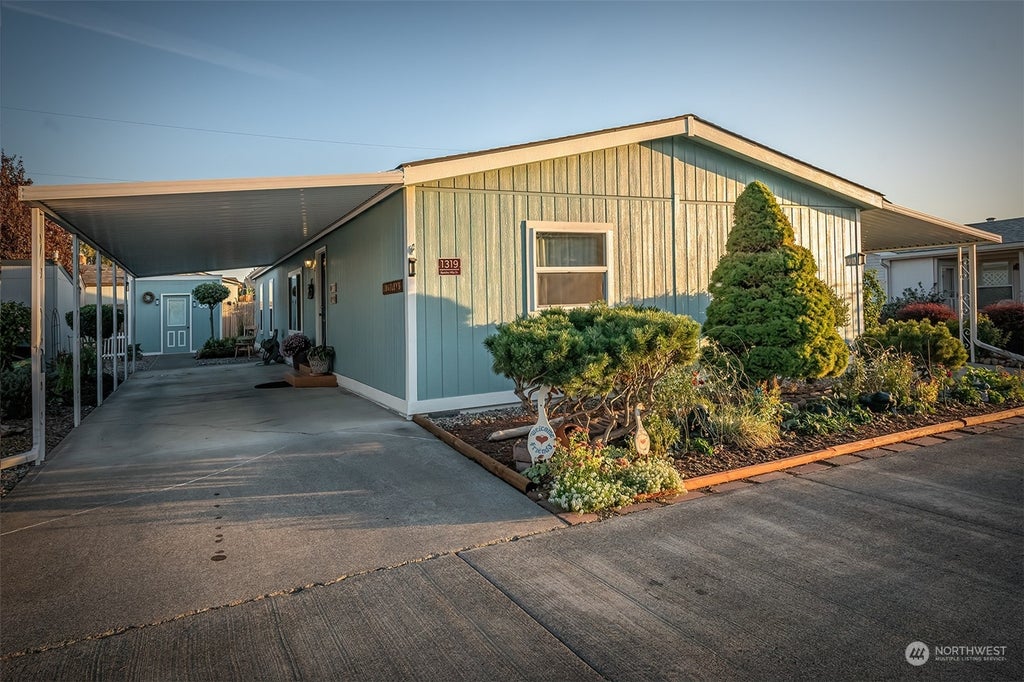 A delightful, light and bright floorplan. This home has a large living room that flows into the dining rm, kitchen and family room. The plan is graced with both east and west covered patio's and carports. A large garden space on west side of yard has a fun area to sit in the evening, east side has covered patio area, and an outside work shed that has power to it. Large primary bedroom is on the south-wing of home with an full bath, north-wing has 2 bed rooms, full bath and laundry room. This home has been loving updated with new flooring, heat pump and AC, giving peace of mind for years to come. Exterior recently painted. Come take a peak, you will be delighted.
