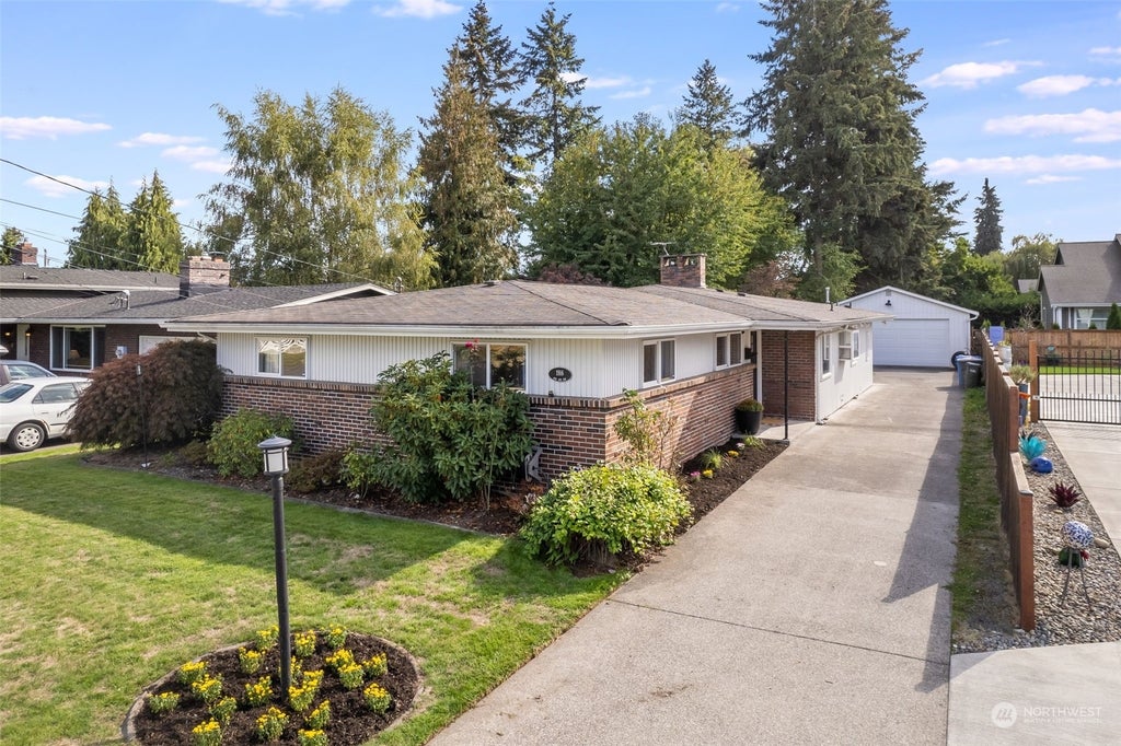 Discover the charm of this delightful rambler in the sought-after location of downtown Puyallup! This home features a spacious living room with huge windows that flood the space with natural light, creating a warm and inviting atmosphere. The large kitchen offers ample storage, perfect for all your culinary needs, and flows seamlessly into the dining area off the living room. Enjoy additional living space with access to a covered patio, ideal for entertaining or relaxing outdoors. The fully fenced yard provides privacy and security, while the large detached garage and shed offer plenty of room for storage and yard tools. This charming home is ready for your personal touch!