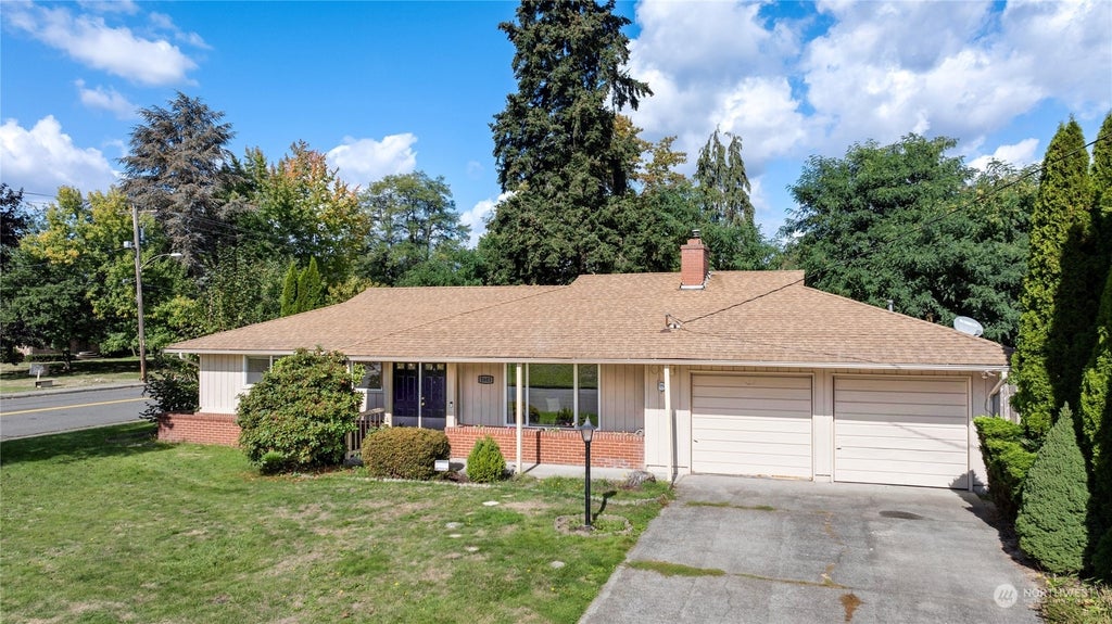 1 story home on large corner lot! Great room design living & dining with easy care laminate floors, gas fireplace w/insert + fan and large picture window for natural light. Kitchen includes vintage cabinets, vinyl floors & convenient breakfast nook seating. Combo laundry room/walk in pantry leads to partial garage conversion/4th bedroom, bonus or family room, you decide! Primary bedroom w/attached 3/4 bath, 2 additional guest bedrooms and full guest bath, plus storage built in's off hallway. Large fenced backyard with deck, outbuilding and fruit trees is perfect for gardening or entertaining. Prime location minutes to 167, Hwy 18, shopping, restaurants, trails, Green River and more!