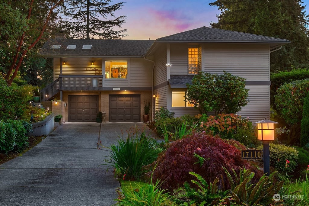 Privately tucked in Edmonds’ Eagles Crest this updated 3-bed home offers boasts views of the Sound & Olympics. Step inside to soaring vaulted ceilings & expansive Anderson windows that frame the views. Formal living, w/ gas fireplace, flows effortlessly into the formal dining. French doors open to a covered view deck, perfect for seamless indoor-outdoor living & entertaining. Bright & white kitchen w/ views. Hardwoods throughout. Main-floor primary suite offers spacious ¾ bath w/ skylights. Lower level offers a versatile rec-room w/ 2nd fireplace, plus 2 beds & access to patio. Lush front yard, huge driveway, & 2-car garage w/ workshop provide ample parking & storage. A/C. Just minutes from Perrinville Village & the Edmonds Bowl