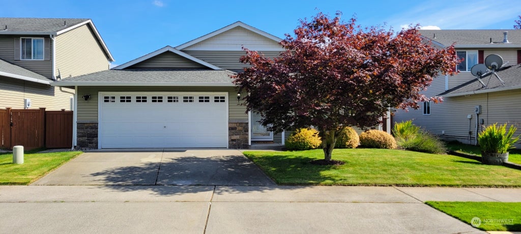 Bright and spacious rambler in the desirable Raili May neighborhood of Hawks Prairie! This meticulously maintained home boasts recent furnace and central A/C. The open-concept great room is filled with natural light from bay windows, and the kitchen features vaulted ceilings, stainless steel appliances (gas range), and a peninsula with breakfast bar. The dining area flows out to a large deck and an impeccably manicured lawn, perfect for outdoor entertaining. The smart floor plan includes two secondary bedrooms and a full bath, along with a private primary suite featuring a walk-in closet and ensuite. Laundry room with like-new washer and dryer included. Extended two-car garage offers extra storage. 5 min to I-5, 15 min to JBLM.