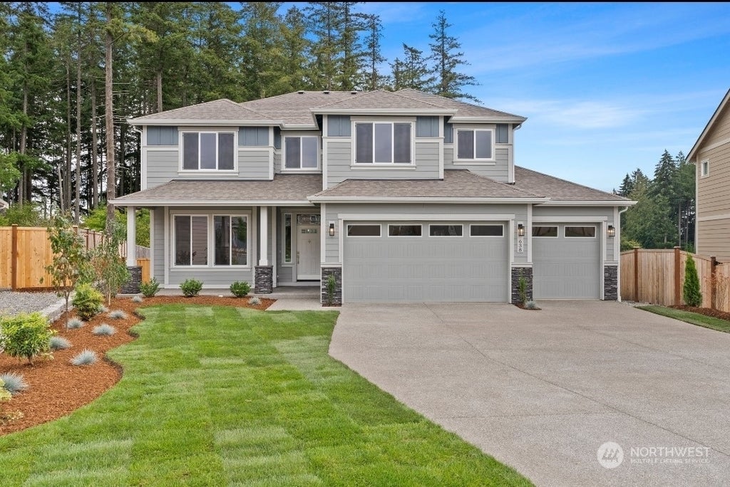 Under Construction in popular Rob Rice Homes community of Steilacoom Ridge, this Rainier plan has it all! Formal dining room, butler pantry, gorgeous kitchen with Maple Shaker cabinets stained in Charcoal, stainless steel appliances, quartz counters throughout home, hardwood floors flow from entry way, dining room, kitchen and nook area. Primary suite with soaking tub with tile surround, & double sinks with tile backsplash, plus a walk-in closet. New energy efficient features include a Heat pump, solar panels, & heat pump water heater too! Lot backs up to open space and is fully landscaped with fenced yard. Local Builder with 35+ yrs experience. Home will be complete Dec. 2024. photos from similar plan on different lot, features may vary.