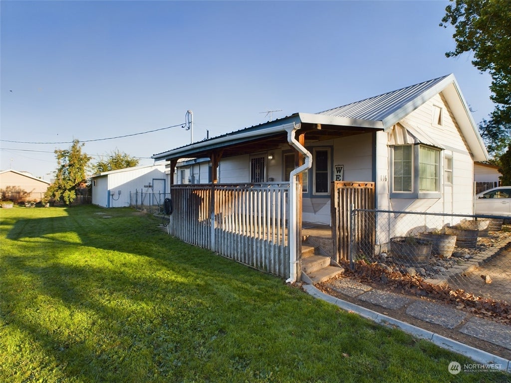 Charming 3 bedroom, 1 bath cottage style home located in the heart of Kennewick! This cozy property features open RV parking and a spacious, fully fenced backyard, perfect for outdoor activities and gardening. The detached 2-car garage includes a working area, ideal for hobbies or additional storage. With a durable metal roof and a 7 year old septic.