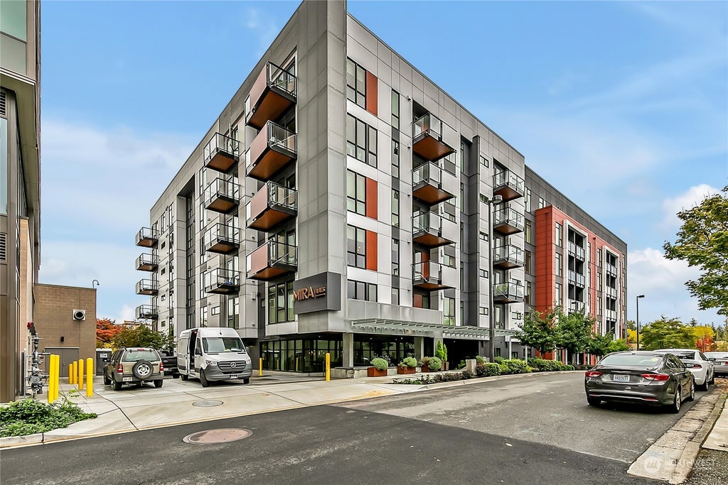 Welcome home to beautiful residence at Mira Flats in heart of downtown Bellevue. Urban lifestyle walking distance to shopping and dining, parks, arts and theater. Open one-bedroom floor plan w/modern kitchen offers generous cabinetry and counter space. Convenient in-unit full sized washer & dryer. Enjoy luxury amenities including Concierge service; private conference room; rooftop terrace w/BBQ; club lounge w/chef-grade appliances, TV, seating area, and lighted patio; pet area & dog wash. One reserved parking space. Move-in ready condition and no rental cap make great investment opportunity. Come and see it today!
