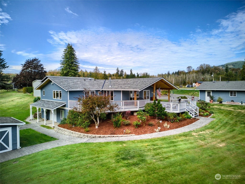 It is Eagle Season! It is a wonder just sitting and listen to the trickling waters of the Samish River! 455 feet of Riverfront on 1.67 acres! Relax on the expansive deck overlooking a grand manicured lawn including fruit trees! Quartz counters in the remodeled kitchen opens to a comfortable living/dining room w/huge windows overlooking the river! New flooring throughout! This 2 bedroom, one level home also offers an office/den, plus a finished room downstairs for crafts/storage, or just a get-away room. Alright...lets talk shop! 36 x 20 RV/Boat storage or just for tinkering. And a 2 car garage with lots of extra room. Newer roof, new furnace w/heat pump! Come enjoy the mountain views! Only a 15 minute drive to town. IT IS Majestic!