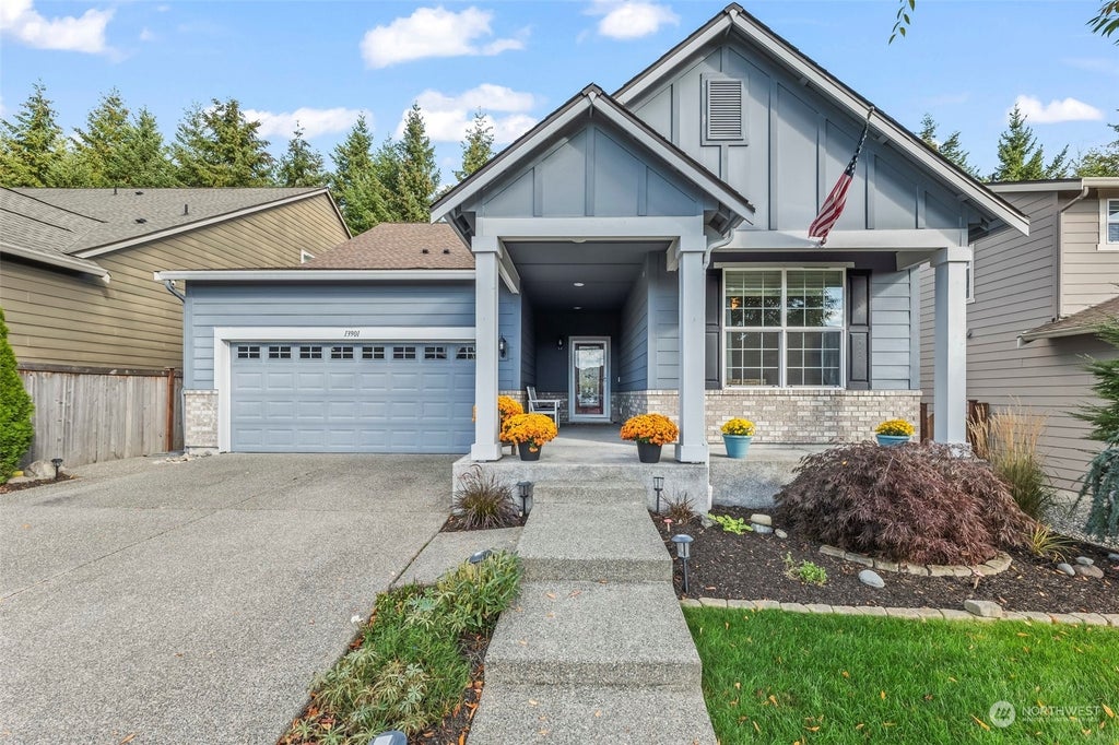 Impeccably maintained Tehaleh home! Covered front porch entry. Great-room style layout and abundant windows create a wonderful, bright, and open feeling. This feeling is enhanced by the gorgeous kitchen with white shaker cabinets, quartz countertops, subway tile backsplash and stainless appliances. Out the windows is natural beauty, as the home backs to open space while the yard boasts turf for easy upkeep. Generous main floor primary suite offers a walk in closet and private 5-piece bath. In addition to the 3 bedrooms and 3 full bathrooms there is a den/home office and a large bonus room! Nicely maintained enclosed yard with exposed aggregate patio. Located within the Sumner School District. Over 40 miles of trails and 15 parks to enjoy.