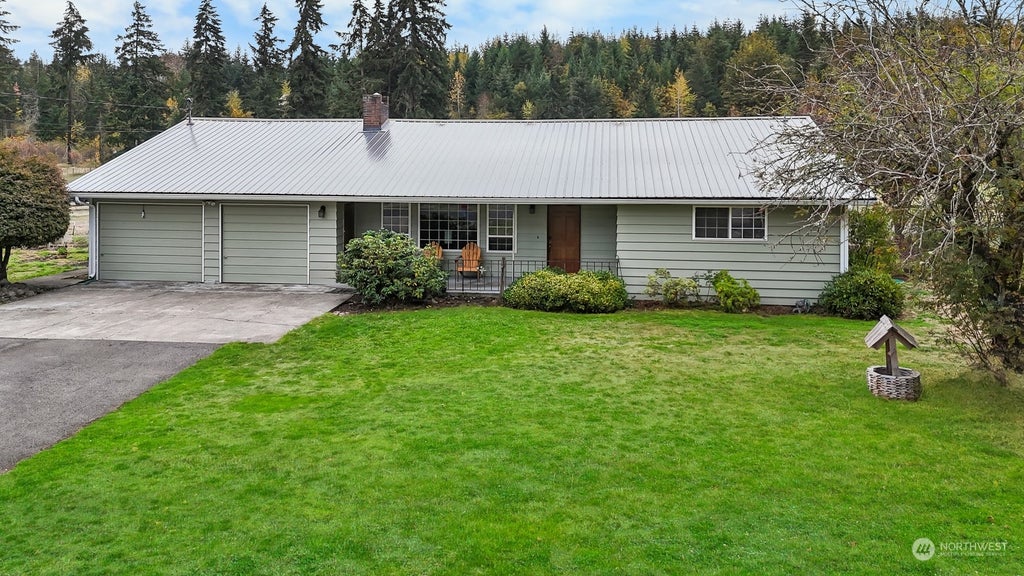 Enjoy the country lifestyle while still having all town amenities right at your fingertips! Move-in ready 3bdrm rambler sitting on level five acre parcel, fenced & cross-fenced, w/ barn ready for your small animals offering watering system & 3 stalls. Don't forget the 784 sqft shop w/ wood stove, 220 power & lean-to! Light & bright Living room with wood fireplace welcomes you inside the home. Hard surface flooring throughout - no carpet! Cozy Kitchen with peninsula eating bar offers an abundance of cabinetry, open to Dining area. Heat pump w/ AC keeps you the perfect temperature year round! Primary Suite boasts dual closets plus private bath. Sit back & relax in the brand new salt water hot tub on expansive covered patio. This is the life!