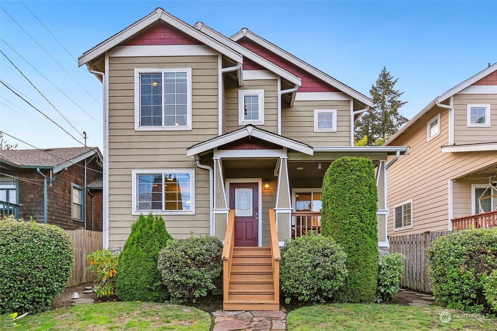 Stunning Bitter Lake home boasting 4 beds, 2.5 baths, and a convenient location just minutes from Green Lake, Carkeek Park, Ballard, the Interurban Trail, public transportation, shopping and dining. Lovely entertainment-style floorplan with gorgeous hardwood & tile flooring, soaring ceilings, ample natural light, and a gourmet kitchen with granite counters, cherry cabinets, and stainless steel appliances. Convenient main floor bedroom or office space, plus three more bedrooms upstairs, including the spacious primary suite with vaulted ceilings, private 5-piece bath, & a walk-in closet. Charming covered porch, plus a fully-fenced backyard with lovely landscaping and detached 2-car garage. Don't miss out on the opportunity to call this home!