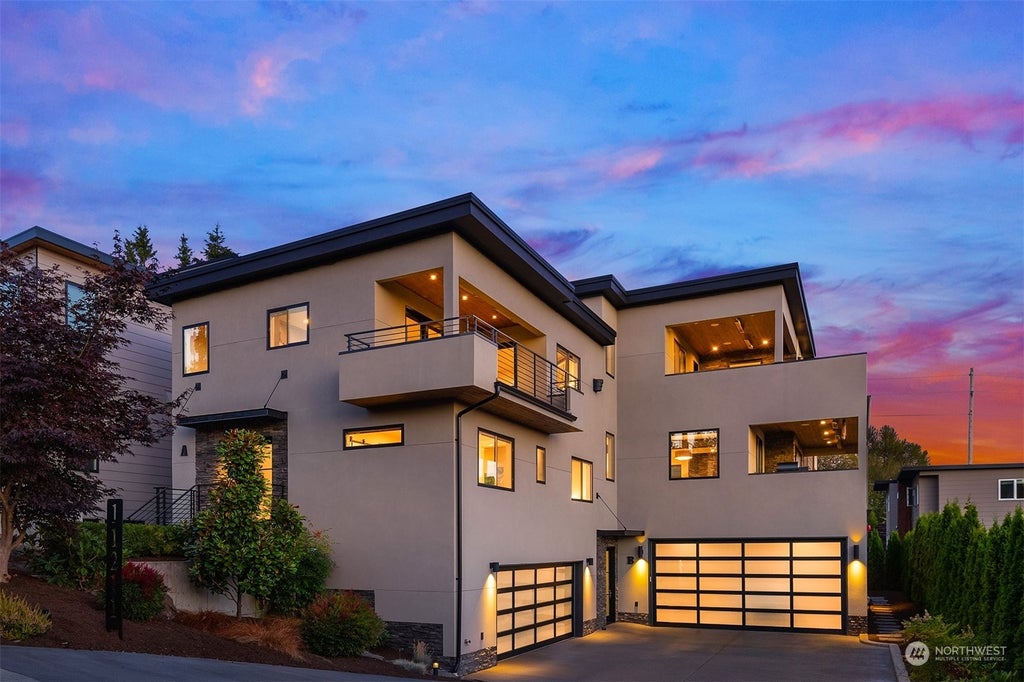 Contemporary Luxury View Townhome in Kirkland Highlands with stunning Seattle Skyline and Lake Washington views. This 1,450 sq ft home boasts high-end finishes, including 3/4” dark oak floors, quartz countertops, upgraded GE Profile appliances, and custom blinds. Enjoy year-round outdoor living on the covered, heated deck. The open layout is perfect for entertaining, featuring a gas fireplace and spacious living areas. The home is sound-insulated, has a private 2-car heated garage, is elevator-ready, and includes central A/C. Close to downtown Kirkland, Google, Microsoft, Bellevue, Redmond, and Woodinville Wine Country.
