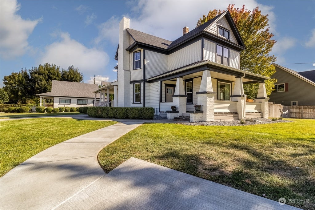 Nestled on just under half-an-acre, this beautiful 1920 farmhouse has been renovated to blend classic charm with modern elegance! Feel the warmth when you step in as sunlights flows through the main floor! The updated kitchen, with white quartz counters, stainless steel appliances, gas range, and classic subway tile backsplash strikes a perfect balance between function and style. Upstairs, the bedrooms and closets provide ample space offering comfort and convenience. The oversized laundry room doubles as a versatile bonus space for a home office, hobby room or guest room! The backyard provides a generous deck perfect for gatherings and dining alfresco. This home is complete with an extra deep two-car garage, hot tub pad and hookups!