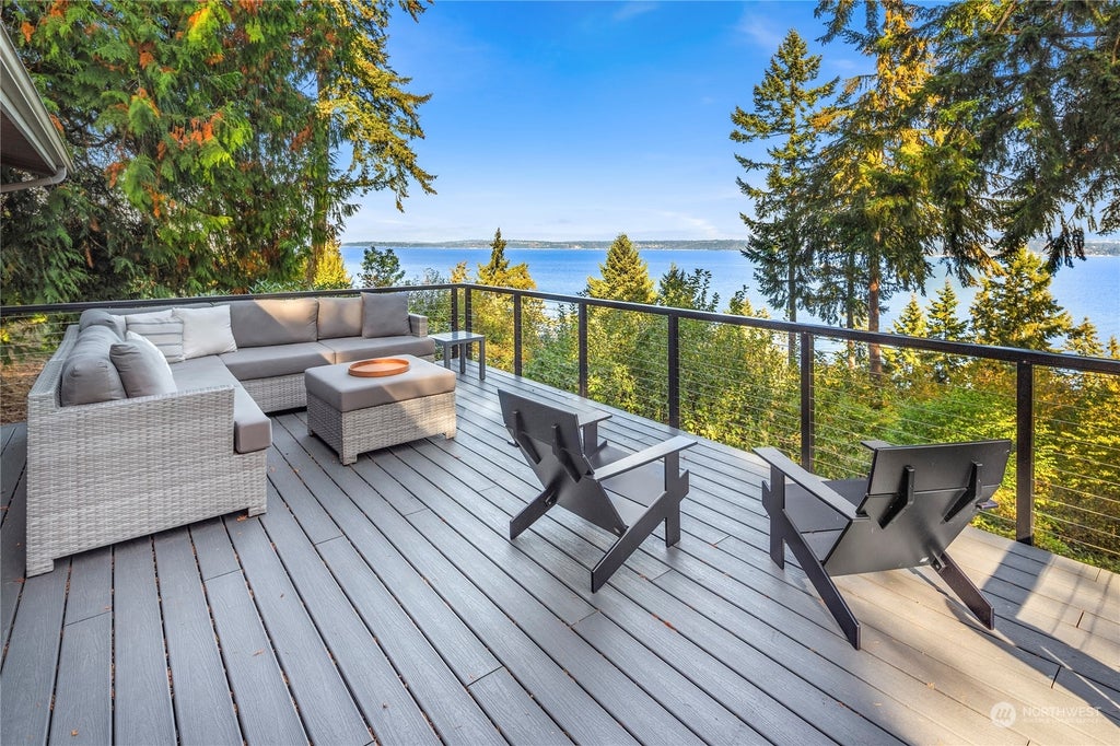 A winding road through towering evergreens ends at The Ridge—utterly private, overlooking huge views facing the Cascade Range and shipping lanes—a sleek, turnkey, one-level, Northwest contemporary sanctuary! Enveloped by native plantings and gardens, the home is 2,170 sq. ft. of high-end fixtures and finishes—hardwood and ceramic tile floors, reimagined kitchen and baths, AC, a walk-in shower primary suite, two other bedrooms, den office, great room, and a detached two-car carport with electric charging station. Decks and a hot tub are perfect places to relax in the calm and quiet, breathe the freshness and watch the orca J-Pod swim up the side of the island. Away from a world of traffic and noise, welcome home!